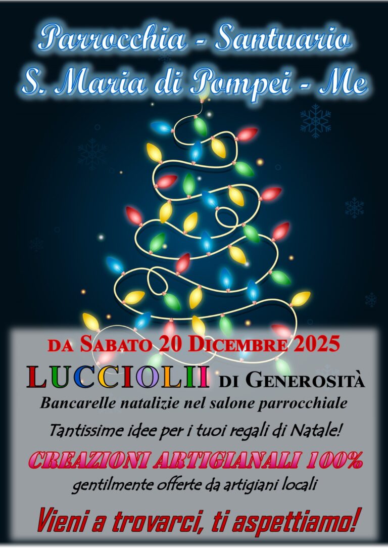 da Sabato 20 Dicembre 2025 Lucciolii di Generosità Bancarelle natalizie nel salone parrocchiale Tantissime idee…