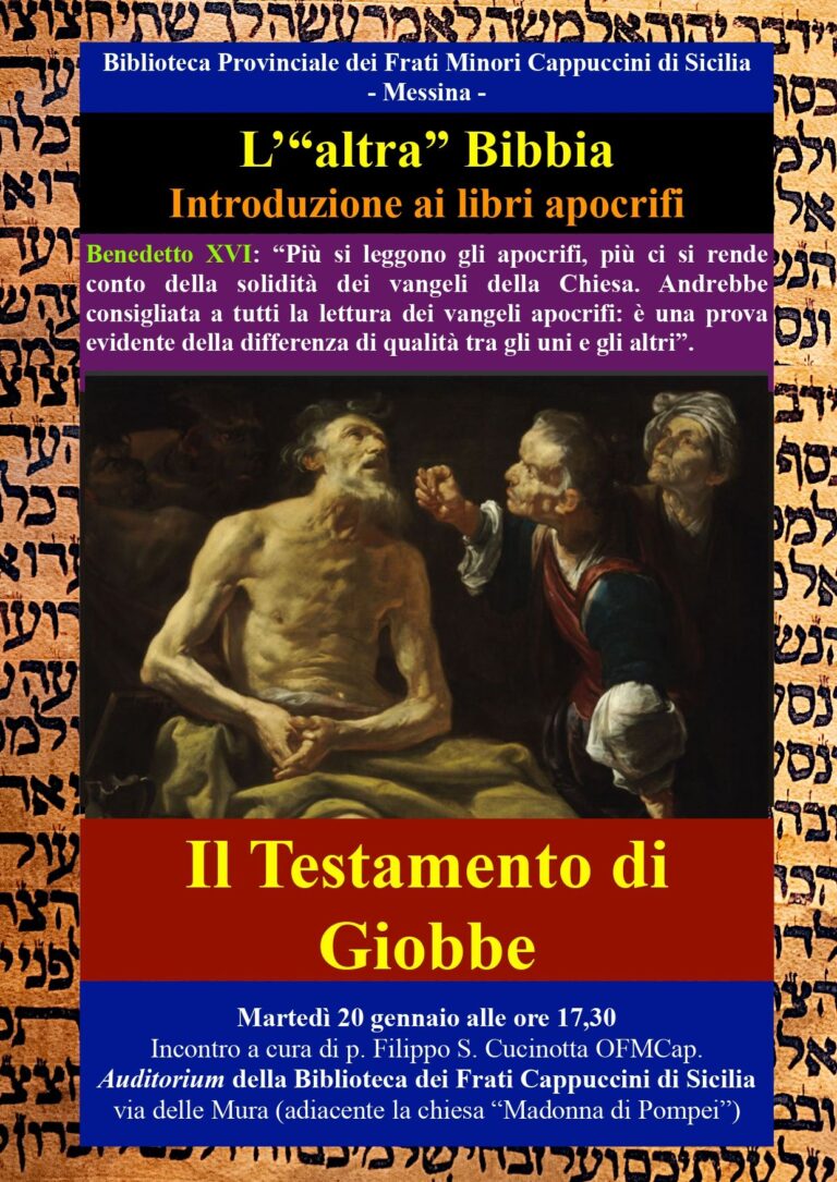 martedì 20 gennaio 2026 alle ore 17:30 presso l’ Auditorium della Biblioteca Provinciale dei Frati Minori Cappuccini di Messina avrà luogo il quarto incontro…