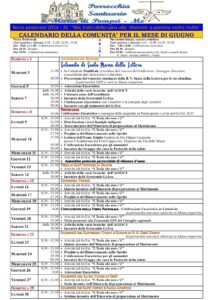 Calendario parrocchia mese di Maggio