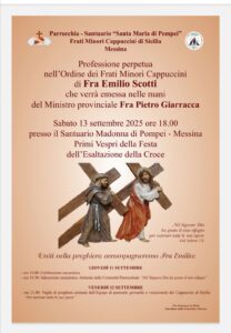 .. Sabato 13 Settembre 2025 .. —— alle ore 18,00 – — – – – == Professione perpetua == —- di fra Emilio Scotti – – – –